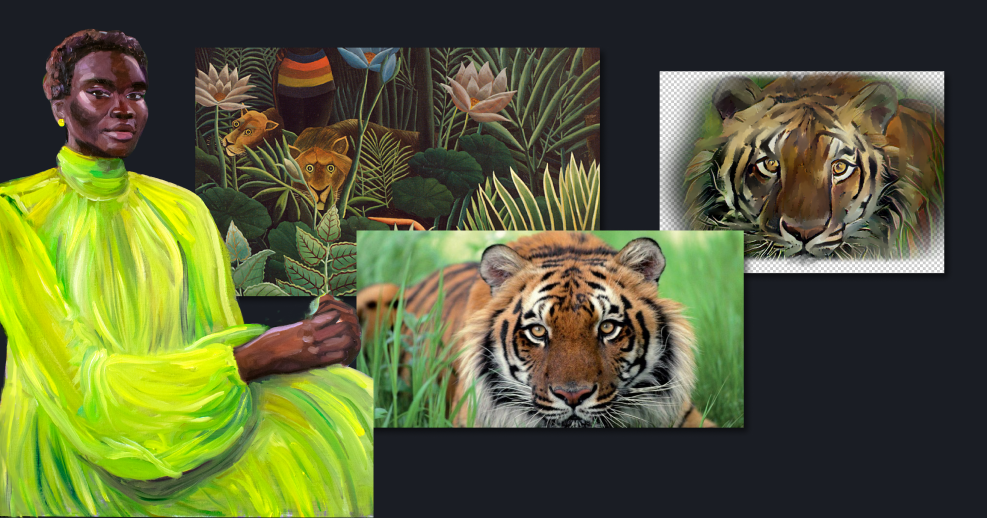 Для оптимизации времени мы обратились к концепции Усиленного интеллекта (IA) — коллаборации человека и искусственного интеллекта. AI стал помощником наших художников, сокращая время на создание цифровых слоев картин и создавая красивые визуализации.